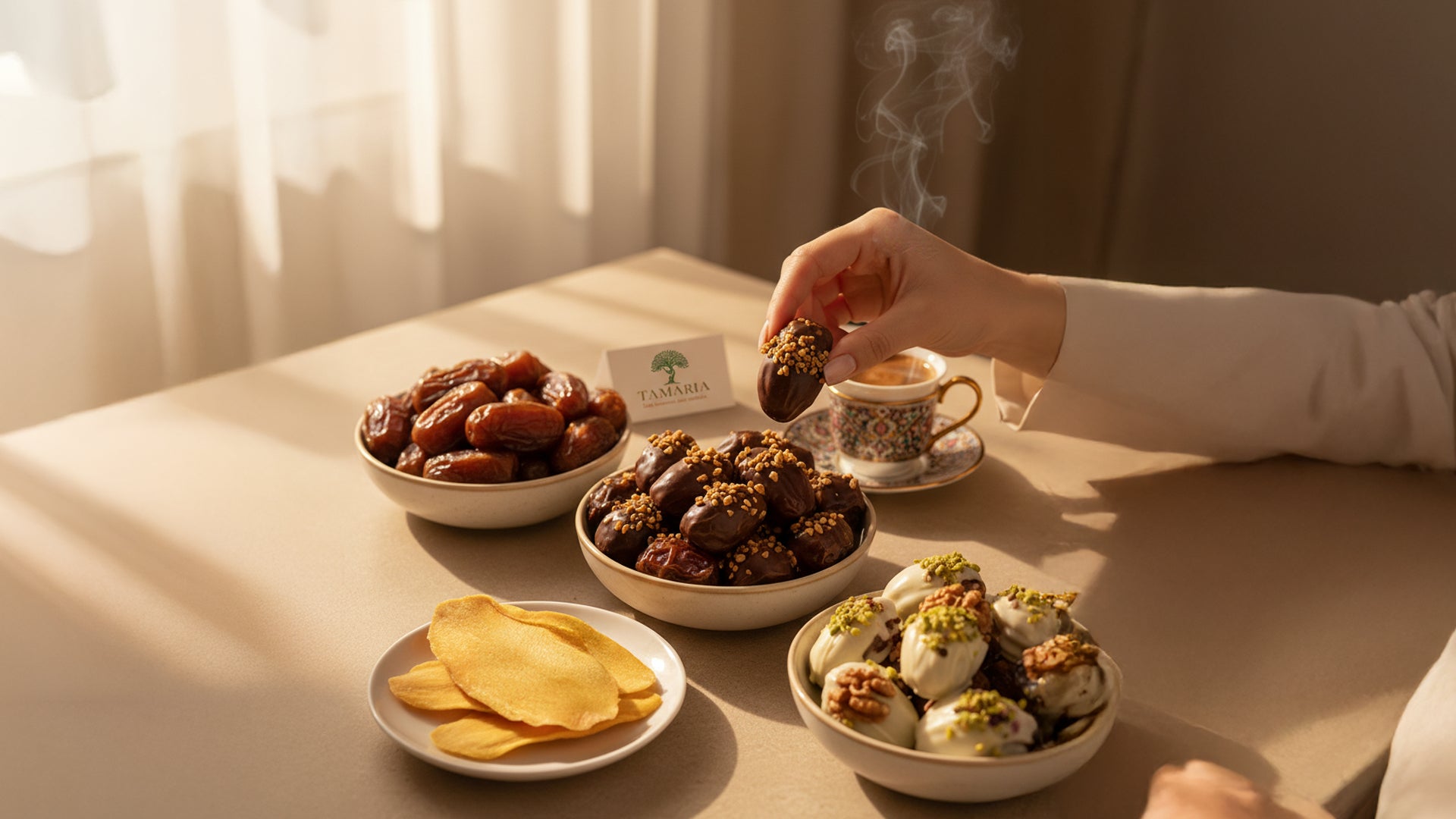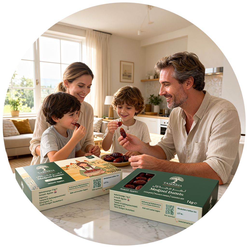 Mit Liebe aus Stuttgart bringt Tamaria hochwertige ägyptische Datteln zu deutschen Familien. Unsere Reise begann mit der Liebe eines Vaters und der einfachen Überzeugung: Natürliche Snacks sollten lecker, gesund und ehrlich sein. Jede Dattel wird sorgfältig von nachhaltigen Farmen ausgewählt, um höchste Qualität für die süßen Momente Ihrer Familie zu garantieren.